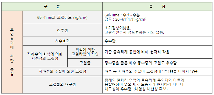 자석을 이용하여 자기장을 생성하고 친환경 D.M.G 무수축 조절재와 결합되어 분자간의 결속력을 더욱더 증진시켜 순차적 점도의 변화없이 급속하게 결정들이 결합되어지며, 조절재 사용으로 주입범위 이탈을 방지하며 토양오염을 방지함은 물론 지속적으로 분자간에 결합하려는 성질을 가지고 있으므로 내구성이 상당히 뛰어난 드럼(Drum) 자성이온화 수용액의 자성 이온화계 주입재이다.