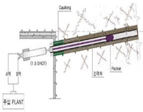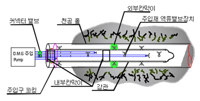 ● 강관내부에 패커를 설치하고 3~4단계 주입 |
